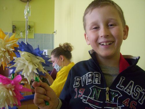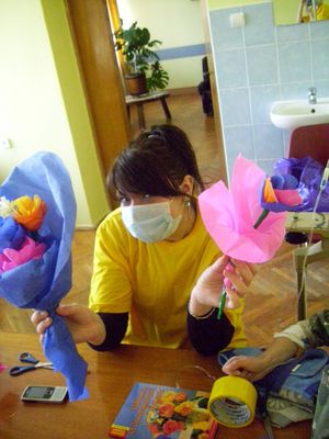 Після заняття діти разом із волонтерами вирішили подарувати власноруч виготовлені букетики тим, хто на заняття з тих чи інших причин прийти не зміг. Тому ми можемо сміливо стверджувати, що весна у відділенні не оминуло нікого. І настрій став по-справжньому весняним :)