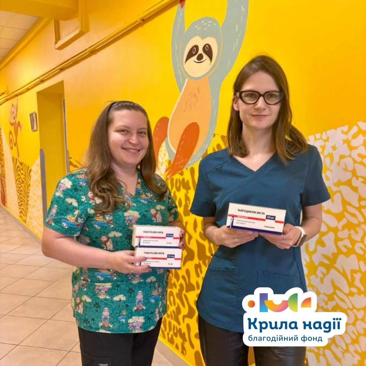 Цього тижня передали 30 флаконів антибіотика «Тагециклін» у Клініка дитячої нефрології, діалізу та трансплантації нирки — для дівчинки 7 років із трансплантованою ниркою.
